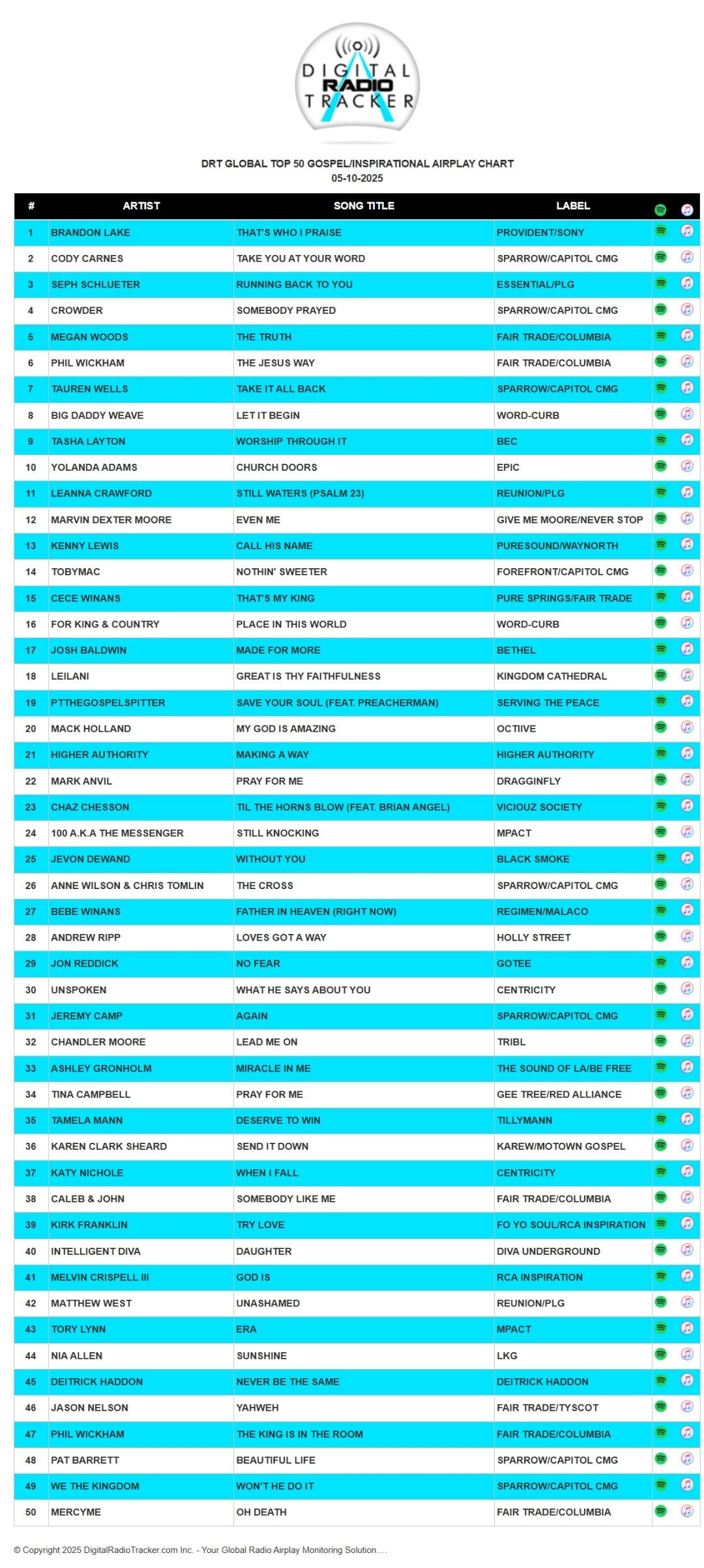 The momentum behind “Pray For Me” hasn’t let up. In fact, the song is now riding strong in its seventh consecutive week of airplay across 15 reporting stations—and possibly more via alternative tracking platforms not measured by DRT. According to Online Radio Box, a global streaming app that tracks thousands of internet radio stations, Mark Anvil’s hit has made its way onto multiple Gospel, Inspirational, and Christian playlists around the world.